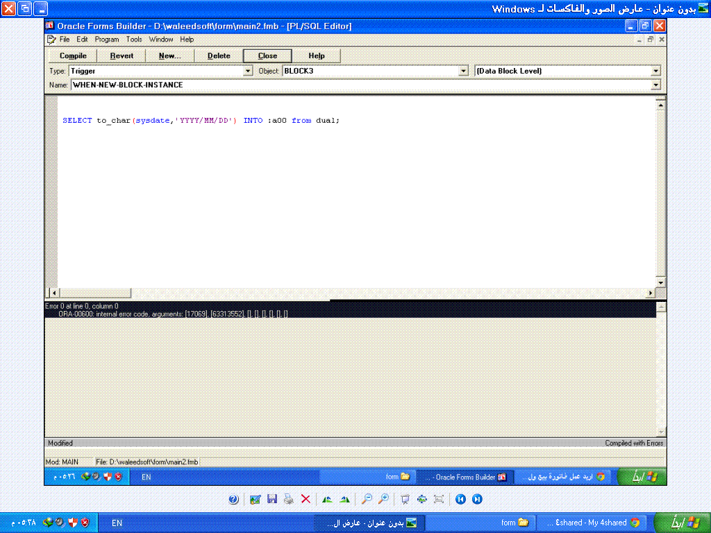 بتاريخ: 9 يناير 201412 سنة comment_245308 جربي إستخدام الصيغة التالية select to_char(sysdate,'YYYY:MM:DD') into :a00 from sys.dual; تقديم بلاغ