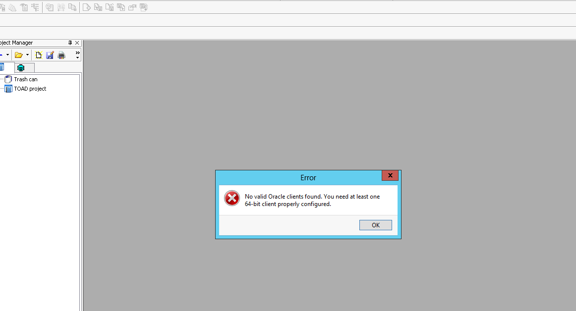 بتاريخ: 13 يناير 201412 سنة comment_245426 الزملاء الأعزاء عندى Oracle 11gو حملت على الجهاز Toad 11.6و عند تشغيل الأخير فوجئت بالصورة المرفقة ارجو مساعدتى خصوصا انى لست خبيرا فى Toad تم تعديل 13 يناير 201412 سنة بواسطة d.experinse تقديم بلاغ