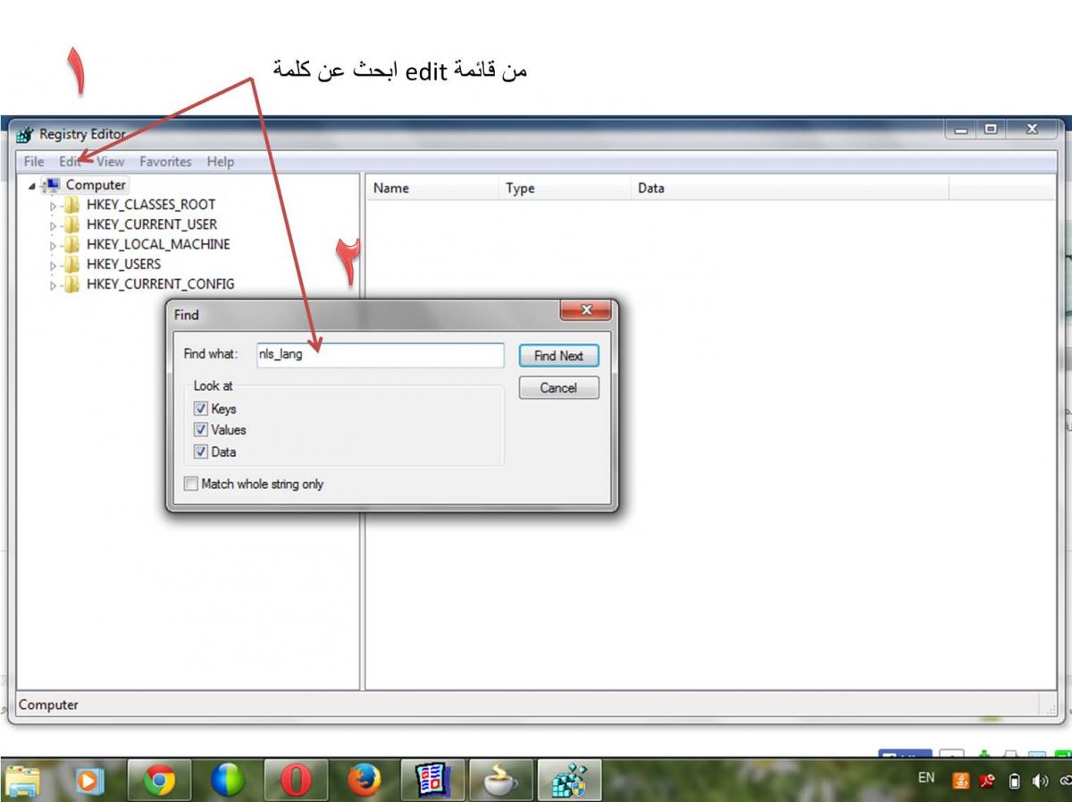 بتاريخ: 23 يناير 201412 سنة كاتب الموضوع comment_245749 من خلال الregedit يعني هكذا ... start>>>run>>>regedit وأبحث عنها بعد ما تظهر نتيجة البحث قم بالضغط عليها مرتين ...كي تعمل copy للقيمة ..وتضيفها للمشاركة حتى نتعرف ماهي القيمة التي في nls عندى قدامها american_america.ar8mswin1256 تقديم بلاغ