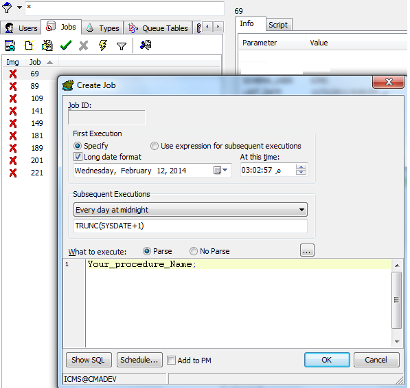 بتاريخ: 12 فبراير 201412 سنة comment_246540 السلام عليكم يتم عمل Procedure يفحص كل العملاء الذين يوجد لهم عقود ولم تنتهي ومن خلال البروسيجر يتم ادخال البيانات في جدول معين. وستستخدم هذا البروسيجر داخل Oracle Job لكي تتم العملية بشكل آلي. بالتوفيق. تقديم بلاغ