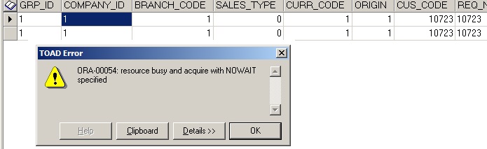 بتاريخ: 2 مارس 201412 سنة comment_247286 عند محاولة إجراء تعديل على بيانات جدول فإنها تظهر الرساله التالية ORA-00054: resource busy and acquire with NOWAIT specified ومعناها أن هذه البيانات مشغوله و تستخدم حالياً من قبل مصدر آخر فكيف أمنع أو أقطع إتصال جميع المستخدمين من الوصول إلى هذا الجدول فقط علماً بأني لا أعلم من هذا المصدر الذي يستخدمها أرجو الرد تقديم بلاغ