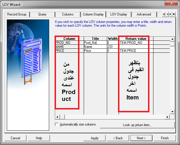 بتاريخ: 31 مارس 201412 سنة comment_248671 اخي يمكنك عمل ذلك بكل سهولة اعمل txt منفصل على الداتا بيز وكمان مخفي ويكون القيمة التي ترجع من lov تكون الى هذا الtxt الخطوة الثانية بعد ما تظهر lov وتختار المطلوب تعمل text_xxx := txt تم تعديل 31 مارس 201412 سنة بواسطة البراء1 تقديم بلاغ