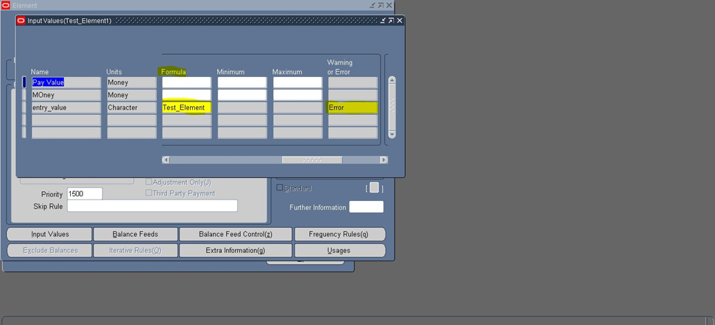 بتاريخ: 28 أبريل 201411 سنة comment_249814 ما هو الكود المكتوب في الـ fast formula ؟ وما هو نوع الـ fast formula ؟ سأعطيك مثال: 1- انشيء Element وعرف له input Value وليكن اسمه Entry_Value ونوعه Character. 2- انشيء Fast Formula من نوع Element input Validation وبداخلها الكود التالي: INPUTS ARE entry_value (text) If TO_NUM(entry_value) > 20000 THEN ( formula_status = 'e' formula_message = 'Amount Should Be Less Than 20000' ) ELSE ( formula_status = 's' formula_message = 'Validated' ) RETURN formula_status, formula_message 3- وفي الـ Entry Value مرر له اسم الـ fast formula ونوع المسج Error. تقديم بلاغ