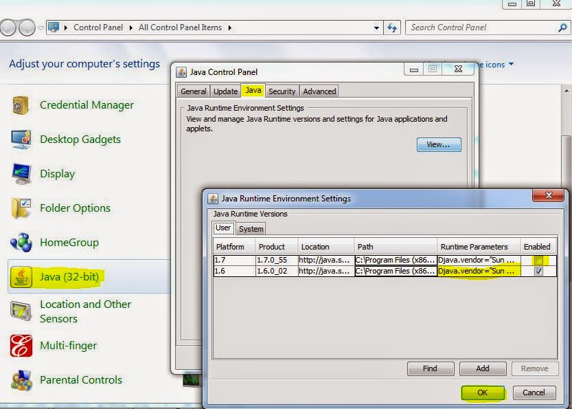 بتاريخ: 7 مايو 201411 سنة comment_250210 هذا الحل منقول استبدال الجافا بدلا من ال Jinitiator لتشغيل الفورمة فى oracle 10g | Replace Jinitiator with JREPOSTED ON 7:30 ص BY YOUSERY GAMAL FATHI | NO COMMENTS استبدال الجافا بدلا من ال Jinitiator لتشغيل الفورمة فى Oracle 10g Replace Jinitiator with JRE عند تشغيل الفورمة على المتصفحات الحديثة ففى الغالب يطلب منك تنزيل ال Jinitiator لتشغيل الفورمة ولكن تفاجأ بعد تنزيله يطلب منك تحميل اصدار اعلى ليتوافق مع المتصفح و فى الغالب يظهر هذا الايرور error: No plug-in available to display this content. ولكن للاسف لا تجد الدعم المناسب للمتصفحات الحديثة لذلك سوف نتطرق لطريقة الاعتماد على الجافا فى تشغيل الفورمة بدلا من Jinitiator فى البداية هندخل على المسار ده : formsweb.cfg i.e E:\DevSuiteHome_1\forms\server\formsweb.cfg وهنغير الجملة دى : System parameter: default base HTML file# baseHTML=base.htm # System parameter: base HTML file for use with JInitiator client baseHTMLjinitiator=basejini.htm # System parameter: base HTML file for use with Sun’s Java Plug-In baseHTMLjpi=basejpi.htm الى الجملة دى ما تم تغييره هو باللون الاحمر للايضاح ) System parameter: default base HTML file# baseHTML=base.htm jpi_classid=clsid: CAFEEFAC-0016-0000-0017-ABCDEFFEDCBA jpi_mimetype=application/x-java-applet;jpiversion=1.6.0 jpi_codebase=http://java.sun.com/products/plugin/autodl/jinstall-1_6_0-windowsi586.cab#Version=1,6,0,17 System parameter: base HTML file for use with JInitiator client# baseHTMLjinitiator=basejpi.htm System parameter: base HTML file for use with Sun's Java Plug-In# baseHTMLjpi=basejpi.htm وبذلك سيتم الاعتماد على ال jdk فى تشغيل الفورمة كما بالصورة : مشاكل بعض الاعتماد على الجافا بدل ال Jinitiator FRM-92095: Oracle JInitiator version too low. Please install version 1.1.8.2 or higher: 1- بعد تسطيب الجافا 6 وفى الغالب هيطلب Update وفى حالة تسطيب jdk7 نقوم بالخطوات التالية لتفادى ظهور هذا الايرور "FRM-92095: Oracle JInitiator version too low. Please install version 1.1.8.2 or higher:" 1- نقوم بالدخول على control panel ثم اختيار java الاصدار الحديث كما فى الصورة 2- بعد كده نروح ل tap ال اسمه java <<view << user ونقوم بازالة العلامة التى امام jdk7 حتى يتم الاعتماد على jdk6 ونضع هذا الكود فى خانة ( runtime parameteres ( Djava.vendor="Sun Microsystems Inc." ثم ok وبذلك جعلنا الاعتماد على jdk 6 فى تشغيل الفورمة اسئلكم الدعاء ومن اشار بالحل تقديم بلاغ