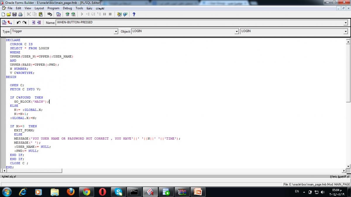 بتاريخ: 19 أغسطس 201411 سنة comment_253852 السلام عليكم ........ اخواني اعملت اشه دخول لبرنامج صغير وزبطت معاي...بس بعديها بدي عمليه تسجيل الدخول تنحفظ على الداتا بيز ايضا في جدول لحالها مع الوقت وتاريخ الدخول ... كيف اعملها ...الرجاء مساعدتي .....صوره كود التريغر الخاص بكبسه الدخول مرفق في الاسفل...... ولكني اضفت جمله insert بعدها على نفس الكبسه وما زبطت معاي تقديم بلاغ