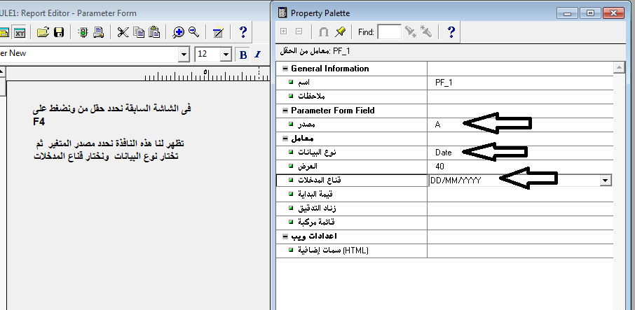 بتاريخ: 11 سبتمبر 201510 سنة كاتب الموضوع comment_265930 ولاستدعا التقرير نضغ زر على فورم التقارير وننسخ الكود التالى ويجب تحديد اسم المسار فى خانة RUN declare st paramlist; begin st:=get_parameter_list('aa'); if not id_null(st) then destroy_parameter_list(st); end if; st:=create_parameter_list('aa'); run_product(reports,'D:\FRAMMES\AAA',synchronous,runtime, filesystem,st,null); end; تقديم بلاغ