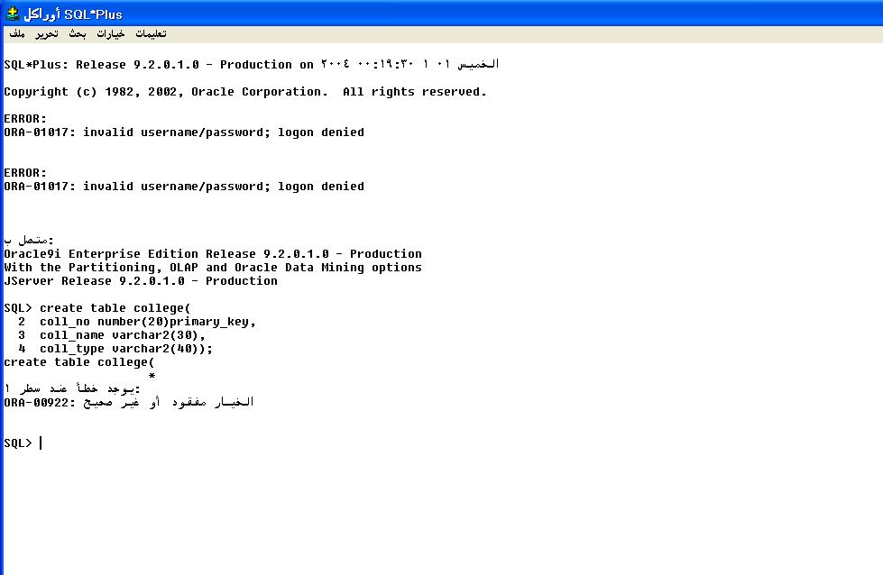 بتاريخ: 7 ديسمبر 201411 سنة comment_257269 ظاخواني في المنتدي دخلت علي as sysdba / وانشتت مستخدم واعطيتة الصلاحيات لاكن عندما اريد اضافة جدول ذاخل هذا المستخدم تطلع الرسالة التالية كما في الصورة ارجو مساعدتي باانا سوف ابدا بتصميم نظام جديد لكي اتمكن من الاوراكل تقديم بلاغ