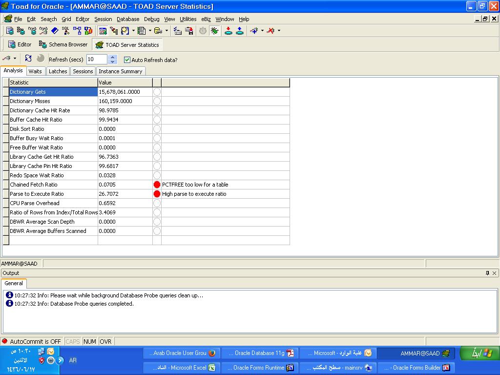 بتاريخ: 6 أبريل 201510 سنة comment_261465 تحية طيبة اعمل على فورم6 و داتابيز 10 في بعض الاحيان و ليس دائما عند عمل حفظ على جدول الموظفين مثلا فانه يعطي رساله (.....working) و يبقى النظام عالق و لا يقوم بعملية الحفظ و لا يتم حل المشكلة الا بعمل اعادة تشغيل للسيرفر كامل , قمت بعمل analyze فلم اجد هنالك (chain) على هذا الجدول فكرت بان ازيد مساحه (pctfree) لكم بما انه لا يوجد (chain) فاتوقع لا يوجد داعي , حجم الجدول ليس كبيرا ,ارجو المساعده فالمشكلة تؤثر على سير العمل بطريقة كبيرة . مرفق صورة عن وضع الداتا بيز الشكر للجميع تقديم بلاغ