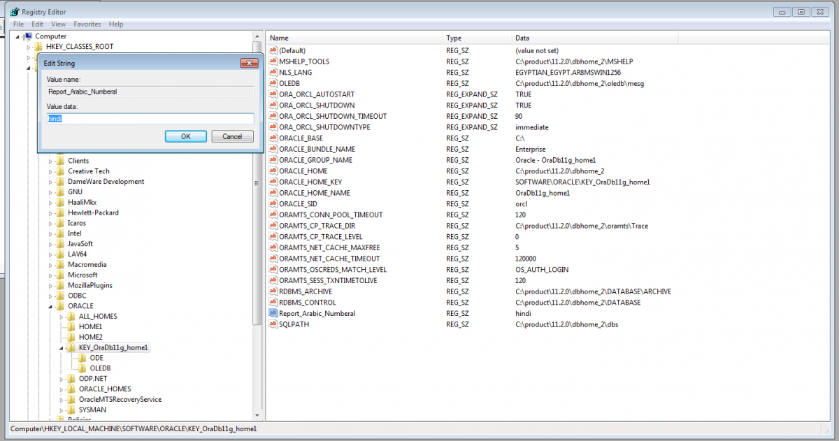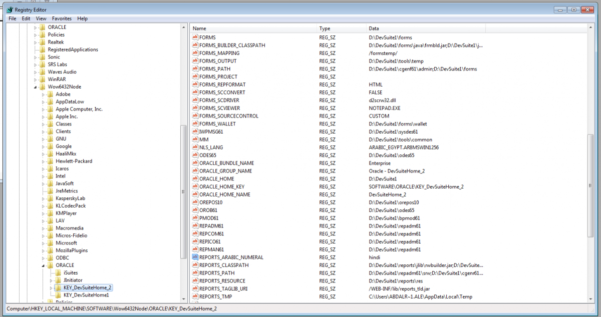 بتاريخ: 15 يونيو 201510 سنة كاتب الموضوع comment_263150 علي فكرة المشكلة عندك , وكده هتأخر نفسك جامد . اقرأ حلول الناس كويس وطبق لكن كده هتعطل نفسك كتير اظن انت قريت الموضوع ده ما دام بصيت ع المواضيع في المنتدي http://www.araboug.org/ib/index.php?showtopic=20443 الموضوع ده بيقول تحط الـ VALUE دي في اي KEY بالظبط , واسم الـ VALUE اصلا REPORTS_ARABIC_NUMERAL وانت كاتب VALUE تانية خالص . انت بتستخدم اصدار ايه من الديفيلوبر ؟ عشان الـ KEY انا مش شايفه عندك . انا بستخدم forms 10g و database 11g تقديم بلاغ