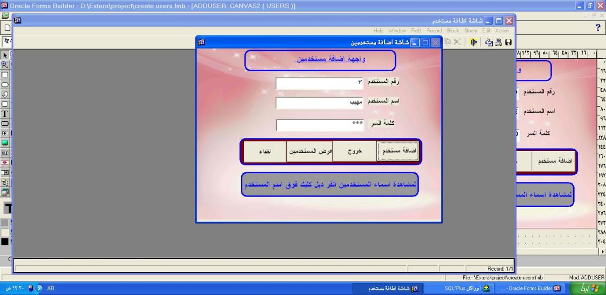 بتاريخ: 1 أكتوبر 201510 سنة comment_266426 اخواني في المنتدي كل عام وانتم بخير اريد ان اسئل في هذة الشاشه اريد عندما ادخل اسم او رقم المستخدم مكرر يطلع لي ان اسم المستخدم ورقم المستخدم مكرر وهذا هو الكود وايضاًالصورة مرفقة اسفل --------------------------------- declare x number; x1 number; begin if :id_no is null or :user_name is null or :password is null then set_alert_property('ALERT1',alert_message_text,'enter user number'); x:=show_alert('ALERT1'); go_item('ID_no'); raise form_trigger_failure; else insert into USERS(id_no ,user_name,password) values(:id_no,:user_name,:password); commit_form; forms_ddl(' create user '||:user_name||' identified by '||:password); forms_ddl(' grant create session to '||:user_name||' identified by '||:password); forms_ddl(' grant create any table,create session to '||:user_name||' identified by '||:password); -- forms_ddl(' create public synonym city for mm.city'); message('تم تغير كلمة السر '); clear_form; end if; end; -------------------------------------- تم تعديل 1 أكتوبر 201510 سنة بواسطة ميسم الكرام تقديم بلاغ