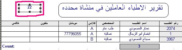 بتاريخ: 18 أكتوبر 201510 سنة comment_266846 بسم الله الرحمن الرحيماخواني الاعزاء حياكم اللهعندي تقرير يقوم بعرض بيانات الاطباء الموجودين في مستشفى محدد والتقرير يطلع بشكل جيد لكن ينقص فيه اسم المستشفى المحددقمت بعمل تكست لاضهار اسم المستشفى لكن كل ما احاول اطلع الاسم دائما يطلع لي رقم المستشفى زي الصوره المرفقةفهل من طريقه اني اعمل تكست ثاني يطلع اسم المنشاة بشرط ان رقم المستشفى يساوي الرقم في التكست السابق زي ما نسوي في الفورمزوشكرا تقديم بلاغ