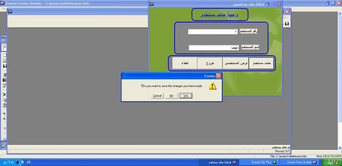 بتاريخ: 19 نوفمبر 201510 سنة comment_267798 اخواني في المنتدي السلام عليكم ورحمته اللة وبركاتة عندي سؤال اريد المساعدة في شفرة في حالة القيام بحذف مستخدم تطلع لي هذة الرسالة في حالة النقر علي no يتم تصفية الفورم بعد الحذف اريد اخفاء هذة الرسالة وهذا هو كود حذف مستخدم declare x number; begin if form_success then set_alert_property('alert1',alert_message_text,' هل تريد حذف المستخدم الحالي '); x:=show_alert('alert1'); if x=alert_button1 then delete from trans1 where id_no=:id_n; delete from users where id_no=:id_n; forms_ddl(' drop user '||:user_nam||' cascade '); commit_form; message('ثم حذف مستخدم'); clear_form; else rollback; set_alert_property('alert1',alert_message_text,'rollback'); x:=show_alert('alert1'); end if; end if; exception when no_data_found then message('لايوجد مستخدمين '); end; تم تعديل 19 نوفمبر 201510 سنة بواسطة ميسم الكرام تقديم بلاغ