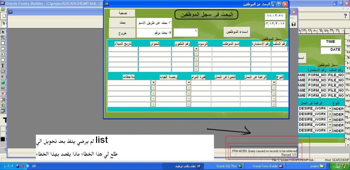 بتاريخ: 19 ديسمبر 201510 سنة comment_269144 السلام عليكم المشكلة لديك فى الحقول التالية : --- أول بلوك --- الحقل الخاص بالرسوم ---- ثاني بلوك - الحقول ( النوع - فترة الدوام - رخصة القيادة ) البيانات الواضحة ف الصورة الثانية .. غير محملة ف ال LIST سواء كانت Static or Dynamic تقديم بلاغ