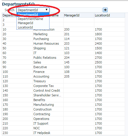 بتاريخ: 4 يناير 201610 سنة comment_269901 الافضل عمل named view criteria خاصة وبالحقول التي تريدها فقط وسحبها كا query panel وربطها بجدول موجود ...او سحبها كاquery panel with table ...او اضافة العنصر quickQuery من لوحة العناصر وتحديد خاصية model , value ... lمثال: #{bindings.UserViewCriteriaQuery.queryModel} و #{bindings.UserViewCriteriaQuery.queryDescriptor} تقديم بلاغ