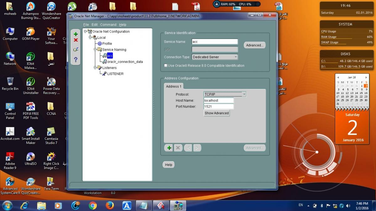 بتاريخ: 6 يناير 201610 سنة comment_269982 مرحبا اخي انشاء listener جديد من Configuration and Migration Tools وتابع الخطوات حتى النهاية (ان كان هناك listener يعمل لا داعي لانشاء جديد ) اذهب الى dv/network/admin افتح الملف tnsnames تاكد من ان host هو اسم الجهاز الخاص بك وايضا port هو نفس البورت الموجود في ال listener ان كانت لديل workgroup في الجهاز اجعل ال host يساوي host.workgroup ان كان هنالك اي اختلاف قم بنسخ هذا الملف بعد التعديل واستبدله بما هو موجود في ملف ال admin في db/network/admin اتمنى ان تساعدك هذه الخطوات تم تعديل 6 يناير 201610 سنة بواسطة emad.pro11 تقديم بلاغ
