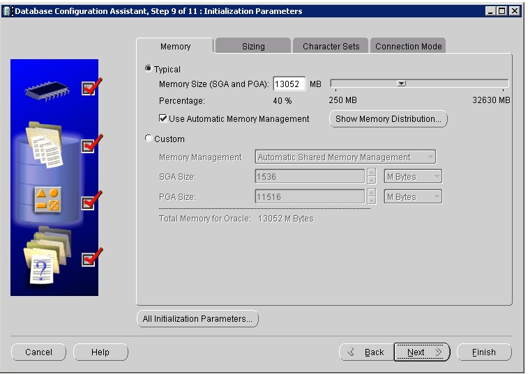 بتاريخ: 6 أغسطس 20169 سنة comment_276924 السلام عليكم ورحمة الله عند تثبيت قاعدة البيانات 11G يوجد خطوه ضمن الإعدادت وهي:- 1- تحديد Memory Siza SGA 2- تحديد الحجم sizing 3- تحديد اللغه ( هل إذا تم إختيار الثاني وهو use unicode (AL32 UTF8) سيدعم اللغه العربيه أو أي لغه او لازم الخيار الثالث. إذا أحد ممكن يجاوبني ويشرحلي بإختصار الشاشه التي في المرفق وكل تاب فيها. تقديم بلاغ