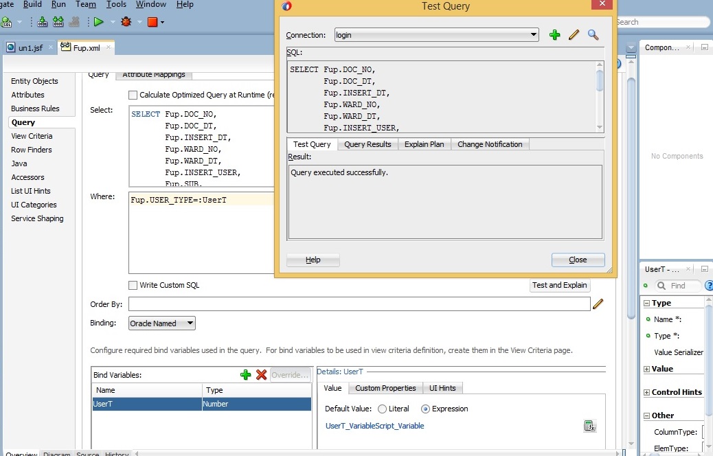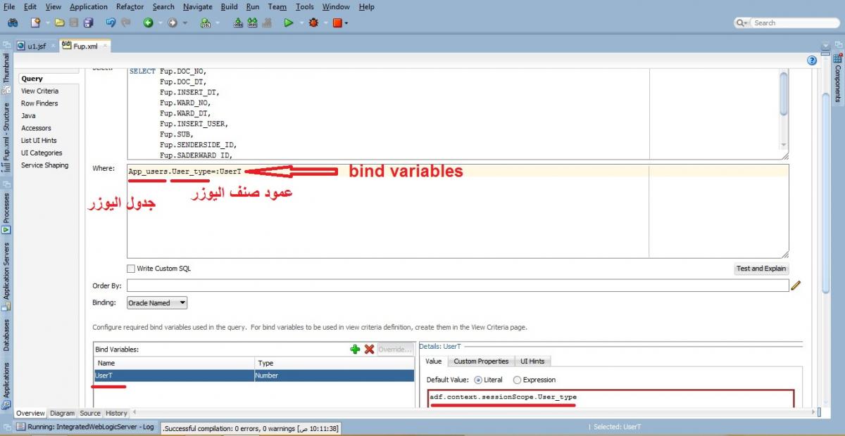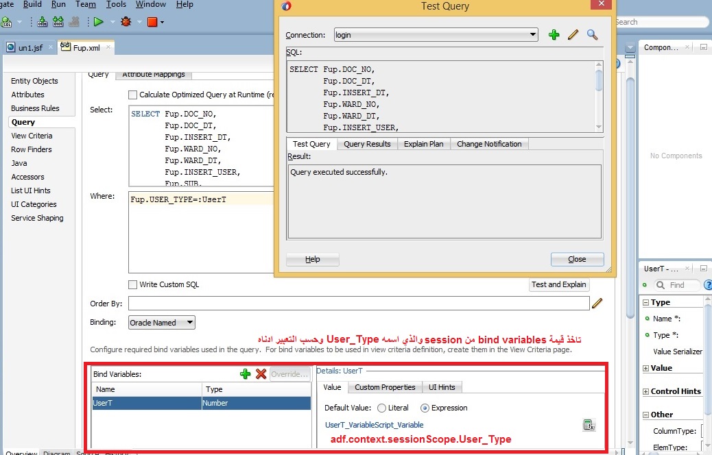 بتاريخ: 28 أغسطس 20178 سنة comment_289563 ممكن اعمل فلتر في جملة where في حالة عدم وضع bind variables كمال في الصورة المشكلة ان bind variables اسمه usert لا يأخذ قيمته من ال session علما اني كتبت داخل التعبير adf.context.sessionScope.User_type هل هنالك اختلاف بين الاصدارات علما اني استخدم الاصدار 12c في موضوع ال session تقديم بلاغ
