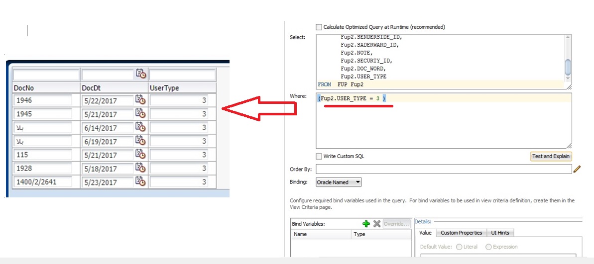بتاريخ: 5 سبتمبر 20178 سنة comment_289735 لن تجدها يجب التعديل في ملف xml الخاص بـ view object شكرا استاذ مصطفى اثقلت عليكم بكترة الاسئلةكتبتها بالشكل التالي داخل view object وتعطي عدم وجود البيانات كالصورة التالية مع العلم توجد بيانات فأرجود منكم حل المشكلة فلم احلها منذ شهرين وشكرا لكم تقديم بلاغ