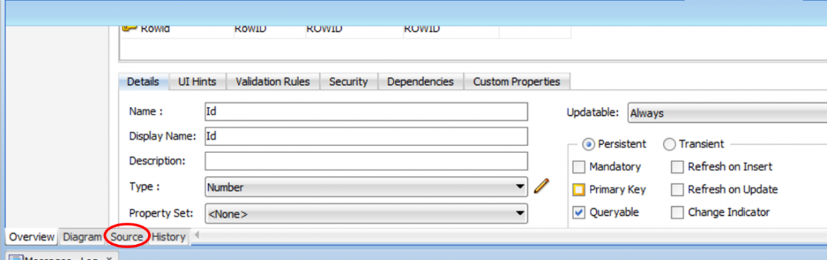 بتاريخ: 25 يناير 20179 سنة comment_282285 واين اجد ملف ال xml الخاص بها اخي الفاضل تجده بنفس النافذة التي أرفقت لنا الصورة للـ Entity Object في الأسفل توجد عدة تبويبات إختير تبويب Source ليظهر كود xml وتستطيع حذفها هذا إن كانت مضافة لديك أرفقت صورة توضح أين تجد كود xml تقديم بلاغ