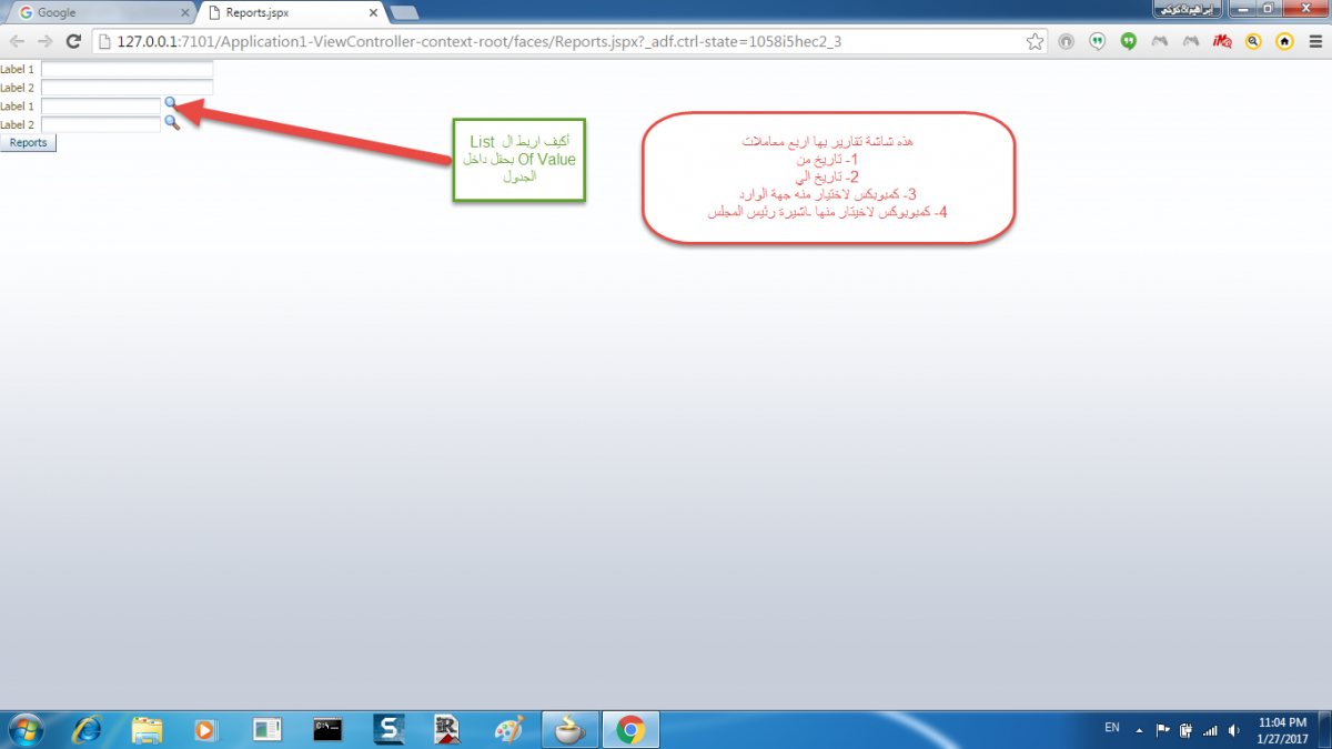 بتاريخ: 27 يناير 20179 سنة كاتب الموضوع comment_282358 شكرا كثيرا اخي مصطفي ولكن الListOf Value سحبتها من ال componnet Palete وليس لها بزنيس كمبوننت من الجداول ووضعتها علي صفحة فارغة تقديم بلاغ