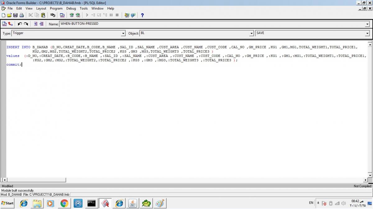بتاريخ: 26 فبراير 20179 سنة كاتب الموضوع comment_283581 عند زرار save عند استخدام commit_form بيحفظ كل شئ على الفورم ما عد اى item من نوع listitem ولو استخدمت جملة insert على الزرار وفى الاخر commit بيكرر الحفظ مرتين 1- اول record كل الداتا الموجودة على الشاشة الموجودة فى جملة insert 2-تانى record كل الداتا الموجودة على الشاشة ماعدا listitem ايه المشكلة... - لا يمكن حفظ قيم معينة دون قيم اذا كانت كل الحقول مرتبطة بقاعدة البيانات, اما ان يتم حفظ كل القيم او لا, فالسبب الوحيد لعدم حفظ القيم هو ان هناك كود ما يعين القيمة null الى الحقول, ابحث عن اى كود ينطلق قبل او اثناء عملية الحفظ مثل pre-insert , pre-commit, key-commit, etc... . - طبيعى انه يحفظ مرتين عن استخدامك لجملة insert then commit; , حيث ان استخدامك لـ insert يرسل السجل الى قاعدة البيانات, ثم باستخدامك commit; ترسل السجل الموجود على الشاشة. - حفظ الجمل الصريحة مثل insert يمكن ان يتم باستخدام forms_ddl('commit'); وليس بـ commit; ولكن لا تستخدمها في هذه الحالة حيث ان المشكلة ليس لها علاقة بذلك اطلاق مهندس اسلام / .....مهندس eslam elbyaly المشكلة طلعت عندى فى خصائص البلوك وجدت اسم الجدول غير محدد(NULL) وبالتالى لا يمكن الحفظQuery Data Source Name هل ممكن اعدل فى هذة الخاصية قبل عمل COMMIT_FORM....طبعا هتسألنى ليه أولا : لو وضعت اسم الجدول فى هذه الخاصية قبل عمل RUN....أجد ان كل LISTITEM لا تحتوى على بيانات وبيتم الحفظ على الفورمة بدون قيمة لل LISTITEM ثانياً : لو وضعت اسم الجدول فى هذه الخاصية فارغ .....أجد ان كل LISTITEM تحتوى على بيانات ولكن لا يتم الحفظ على الفورمة وبيعطى رسالة NO CHANG TO SAVE تم تعديل 26 فبراير 20179 سنة بواسطة 15mohamed zakaria تقديم بلاغ