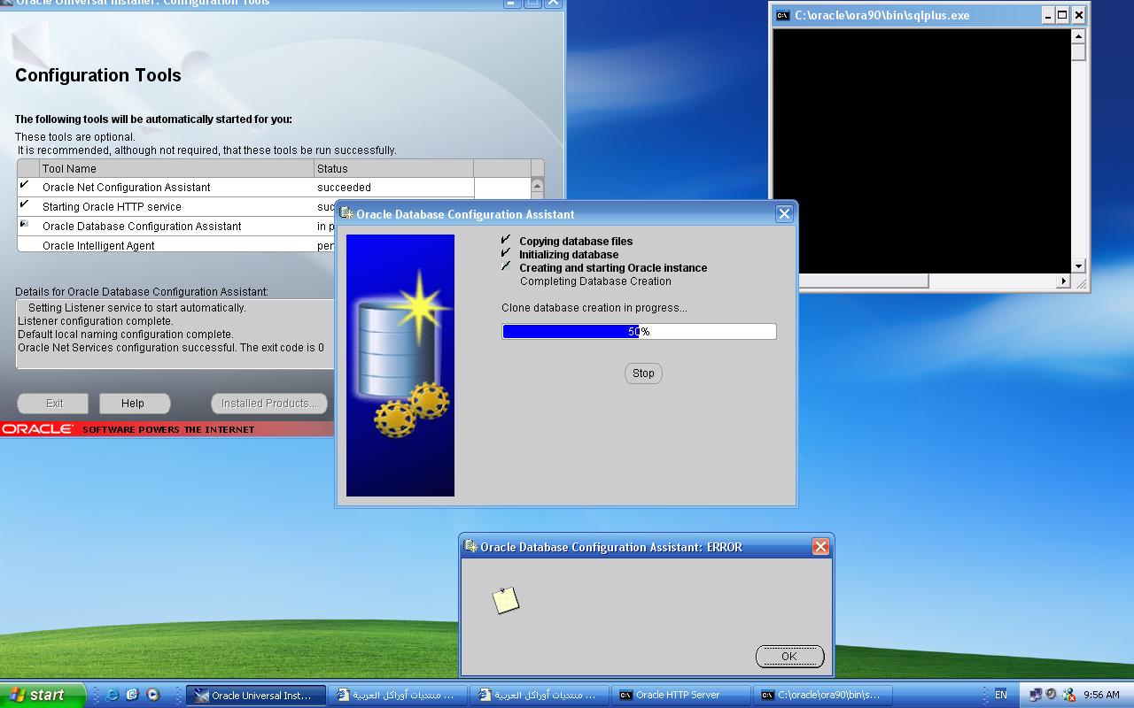 بتاريخ: 13 أبريل 200521 سنة comment_32997 عزيزي نايف ،،كل من :Oracle Net Configuration Assistant Starting Oracle HTTP serviceoracele databas configuration assistant = ODBCAعبارة عن برامج (tools) مسؤولة عن تنفيذ بعض المهام، وهي كما تلاحظ في الصورة: .These tools are optional .It is recommended, although not required, that these tools be run successfully فمثلاً الـODBCA مسؤول عن إنشاء قاعدة البيانات ،، إذا فرسالة الخطأ في الصورة تم إطلاقها من قِبل الـODBCA !! بس إللي مش واضح سبب الخطأ !! وعليه يا عزيزي - إحنا دلوقت ممكن نقول إن الأوراكل نزل عندك كامل بس من غير قاعدة بيانات ملحقه معاه. إذاً واضح إن المشكلة بتحصل أثناء إنشاء قاعدة البيانات.. وأنا بصراحة مش عارف إنت عملت إيه بعد ما ظهرت المشكلة.. هل تجاهلتها وأكملت تنصيب الأوراكل أم ماذا ؟!لكن .. عشان نستفيد كلنا وتعرف بالضبط المشكلة فين: أنا من رأيي إنك تنزل الأوراكل من جديد، بس مش بنفس الطريقة.. نصب الأوراكل مع باختيار Software Onlyبعد كده نحاول (إنشاءالله) نشغل الـODBCA علشان نعمل قاعدة البيانات، وإذا ما حددنا الخطأ وظهر كما هو في الصورة !! في الحالة دي حنعمل (إنشاءالله) قاعدة البيانات من غير استخدام الـODBCA.. يعني Manuallyإيه رأيك؟على العموم سوف أرفق لك طريقة التنصيب بالصور بعد قليل (إنشاءالله) ... تقديم بلاغ