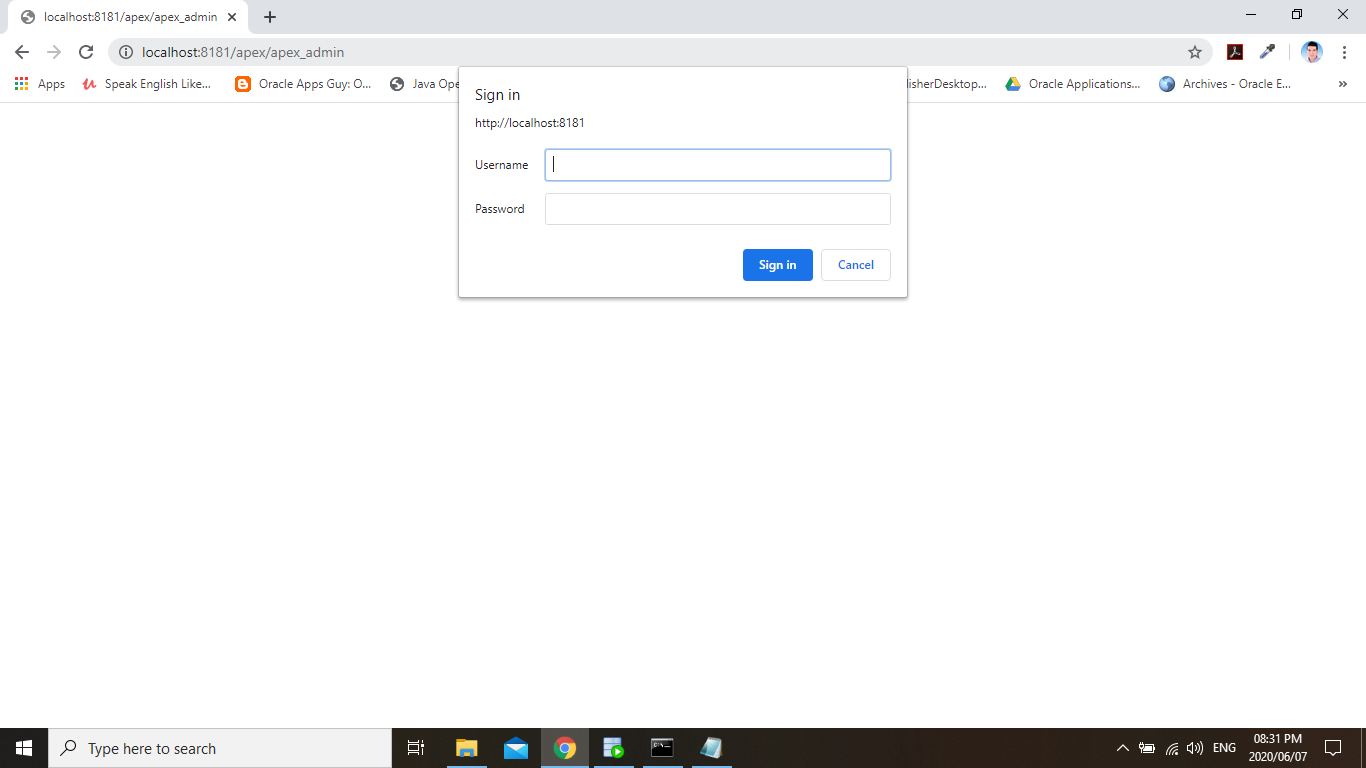 بتاريخ: 7 يونيو 20205 سنة comment_300547 السلام عليكم قمت بتنزيل Oracle Database 12C Release 1 Enterprise Edition ثم بعد ذلك قمت بنسطيب Oracle Apex 20.1 و عند محاولة فتح الرابط التالي http://localhost:8181/apex/apex_admin تظهر الرسالة المرفقة -------- ANONYMOUS User is Unlocked أرجو التكرم بالمساعدة في حل المشكلة تقديم بلاغ