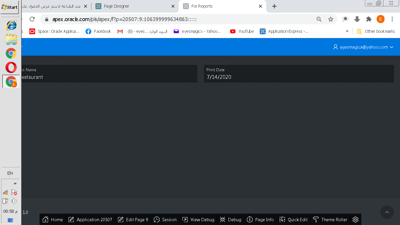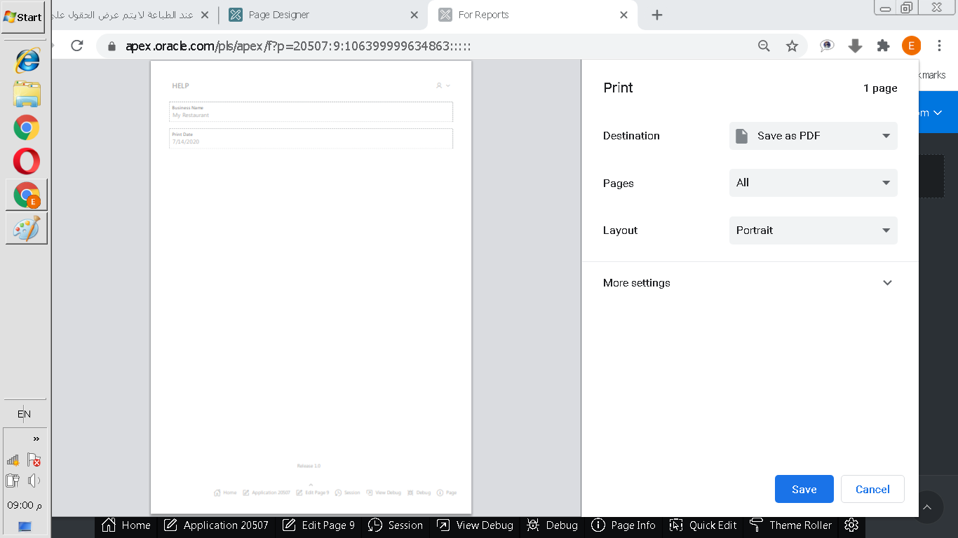 بتاريخ: 12 يوليو 20205 سنة comment_300778 السلام عليكم ورحمة الله وبركاته Apex 18.2 and 20.1. Template: Minimal no navigation. صفحة تحتوى على Region with two display-only items. تم تصميمهم بحيث يظهروا على سطر واحد. ولكن عند الطباعة يتم عرضهم واحد أعلى الآخر. ما السبب فى ذلك؟ أريد طباعتهم على سطر واحد. - غير أن الملف الناتج عن الطباعة يصدر عنه صفحتين بالرغم من ان محتوى الصفحة لا يستدعى صفحتين. - من فضلك قم بتشغيل الصفحة ومحاولة الطباعة, ستجد فى الـ Print Preview ما أشير اليه. شكرا جزيلا https://apex.oracle.com ws = ESLAM_WS user = forhelp pwd = forhelppass app = Help page= 9 تم تعديل 12 يوليو 20205 سنة بواسطة eslam elbyaly تقديم بلاغ