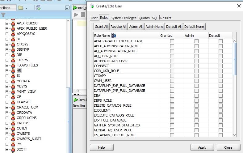 بتاريخ: 4 أغسطس 20205 سنة comment_300882 تم العبث بالroles التي يمتلكها مستخدم hr وذلك من خلال برنامج sql developer وأصبحت فارغة كالصورة المرفقة ,كيف يمكن اعادتها الى الوضع الافتراضي الذي كانت عليه بعد تنصيب ال sql developer؟ او بالأحرى ما هي ال roles الافتراضية التي كانت قبل العبث؟؟؟ تم تعديل 4 أغسطس 20205 سنة بواسطة saad maaz تقديم بلاغ