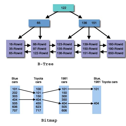 بتاريخ: 21 يوليو 200520 سنة comment_42126 The Oracle b-tree indexThe oldest and most popular type of Oracle indexing is a standard b-tree index, which excels at servicing simple queries. The b-tree index was introduced in the earliest releases of Oracle and remains widely used with Oracle9i (see Figure A). B-tree indexes are used to avoid large sorting operations. For example, a SQL query requiring 10,000 rows to be presented in sorted order will often use a b-tree index to avoid the very large sort required to deliver the data to the end user. توجد صورة للشرحOracle offers several options when creating an index using the default b-tree structure. It allows you to index on multiple columns (concatenated indexes) to improve access speeds. Also, it allows for individual columns to be sorted in different orders. For example, we could create a b-tree index on a column called last_name in ascending order and have a second column within the index that displays the salary column in descending order. Listing A presents the SQL.Listing A create index name_salary_idxon person( last_name asc, salary desc); While b-tree indexes are great for simple queries, they are not very good for the following situations: Low-cardinality columns—columns with less than 200 distinct values do not have the selectivity required in order to benefit from standard b-tree index structures. No support for SQL functions—B-tree indexes are not able to support SQL queries using Oracle's built-in functions. Oracle9i provides a variety of built-in functions that allow SQL statements to query on a piece of an indexed column or on any one of a number of transformations against the indexed column. Prior to Oracle9i, the Oracle SQL optimizer had to perform time-consuming long-table, full-table scans due to these shortcomings. Consequently, it was no surprise when Oracle introduced more robust types of indexing structures.Bitmapped indexesOracle bitmap indexes are very different from standard b-tree indexes. In bitmap structures, a two-dimensional array is created with one column for every row in the table being indexed. Each column represents a distinct value within the bitmapped index. This two-dimensional array represents each value within the index multiplied by the number of rows in the table. At row retrieval time, Oracle decompresses the bitmap into the RAM data buffers so it can be rapidly scanned for matching values. These matching values are delivered to Oracle in the form of a Row-ID list, and these Row-ID values may directly access the required information.The real benefit of bitmapped indexing occurs when one table includes multiple bitmapped indexes. Each individual column may have low cardinality. The creation of multiple bitmapped indexes provides a very powerful method for rapidly answering difficult SQL queries.For example, assume there is a motor vehicle database with numerous low-cardinality columns such as car_color, car_make, car_model, and car_year. Each column contains less than 100 distinct values by themselves, and a b-tree index would be fairly useless in a database of 20 million vehicles. However, combining these indexes together in a query can provide blistering response times a lot faster than the traditional method of reading each one of the 20 million rows in the base table. For example, assume we wanted to find old blue Toyota Corollas manufactured in 1981 (see Listing .Listing B select license_plat_nbrfrom vehiclewhere color = ‘blue’and make = ‘toyota’and year = 1981; Oracle uses a specialized optimizer method called a bitmapped index merge to service this query. In a bitmapped index merge, each Row-ID, or RID, list is built independently by using the bitmaps, and a special merge routine is used in order to compare the RID lists and find the intersecting values. Using this methodology, Oracle can provide subsecond response time when working against multiple low-cardinality columns (see Figure . توجد صورة للشرح تم تعديل 21 يوليو 200520 سنة بواسطة Admin05 تقديم بلاغ