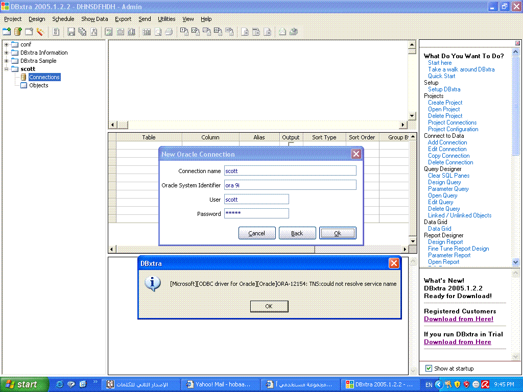 بتاريخ: 2 أكتوبر 200619 سنة comment_79943 مشكوره اختى على تعبيك اتمنى ان ترسلى لى الكراك [email protected]و عندى مشكله فى التعامل مع البرنامجانا ناجاحة فى التعامل مع البرنامج مع الاكسيس و لكن لم استطيع التعامل مع الاوراكل بسبب مشكله فى تعريف الاتصالاليكى صوره توضح المشكلهاتمنى ان تساعدينى لانى فى اشد الحاجه لاتعامل مع برنامج يقوم يعمل التقاريراتمنى ان تساعدينى تقديم بلاغ